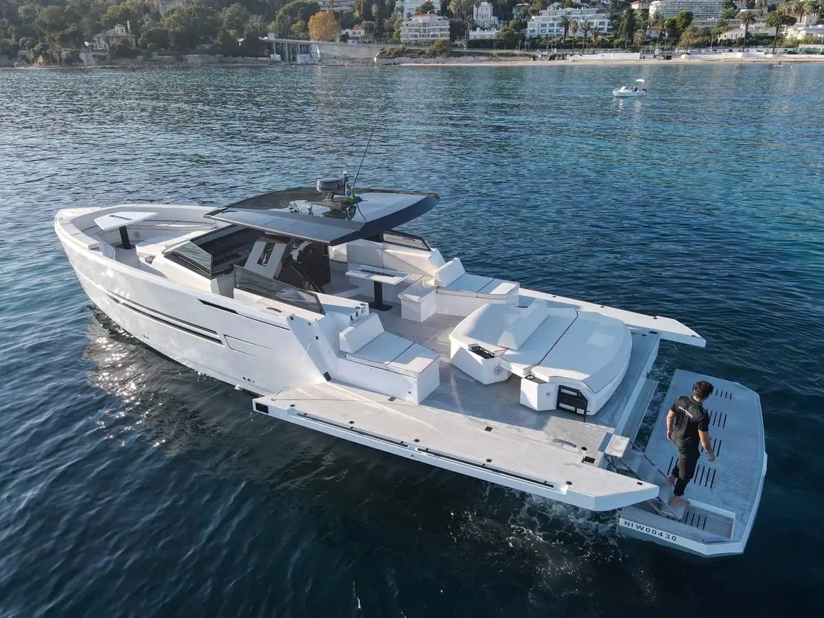 The Okean 55 is a 2022 motor yacht purpose-built for social cruising along the French Riviera. With accommodation for up to 12 guests across 2 cabins, she balances intimate gatherings with the flexibility to entertain larger groups by day. Contemporary interiors prioritise open-plan living, creating easy flow between socialising spaces—ideal for groups seeking both privacy and connection.