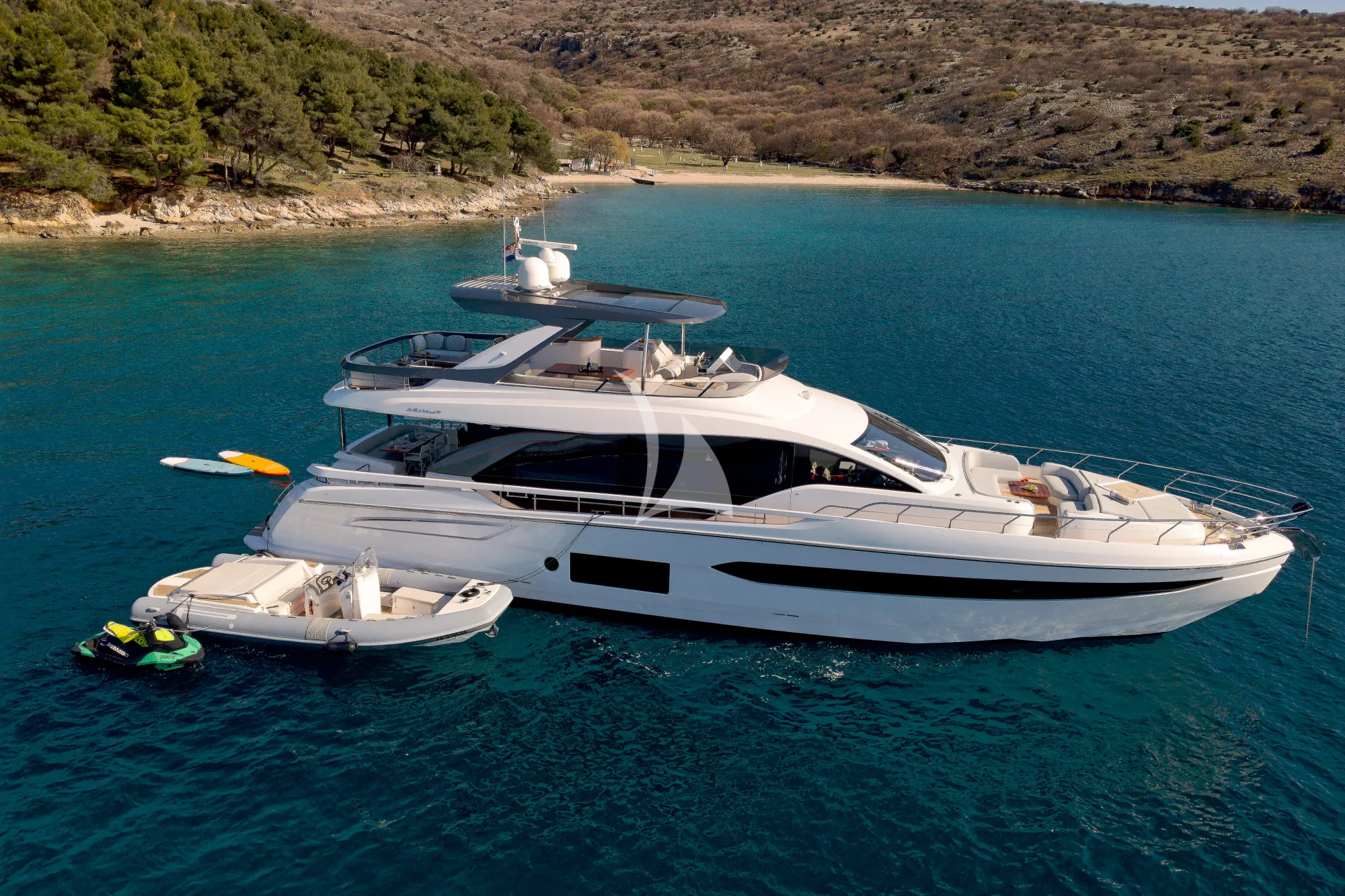 OMR GROUP is a 2020 Azimut 78 that embodies contemporary Italian design and effortless performance across the Adriatic. Her refined interiors marry light tones with natural textures, while panoramic glazing floods cabins and saloons with sea light. Four thoughtfully appointed cabins sleep up to 8 guests, each with ensuite facilities and furnishings that balance indulgence with understated sophistication.