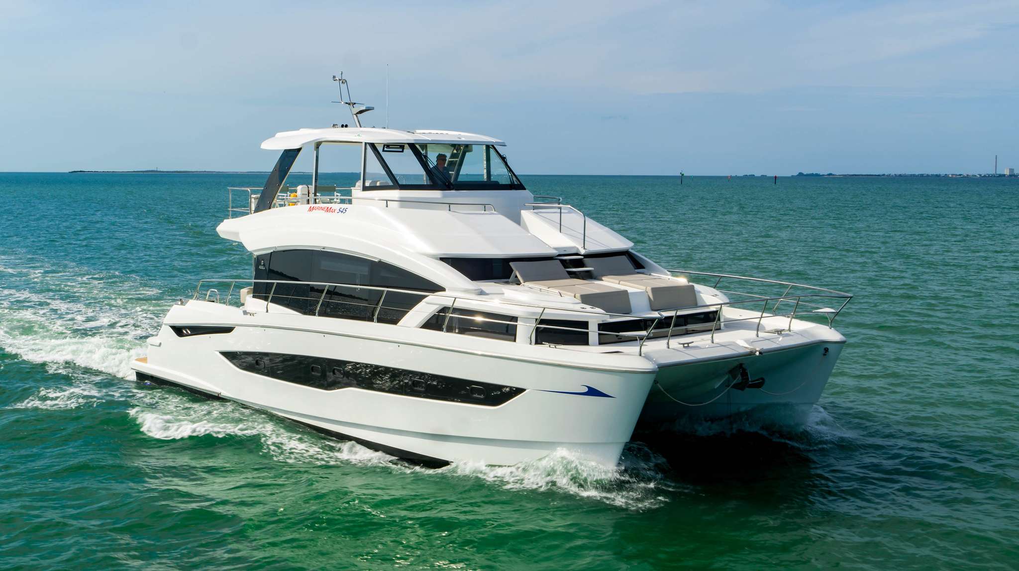 PAINTED PELICAN is a 2024 Aquila 54 power catamaran offering refined Caribbean cruising for eight guests across four double cabins. Her all-white hull and expansive deck plan deliver the space and comfort demanded by discerning charterers, with both sheltered indoor entertaining and abundant outdoor lounging. The modern teak and white interior strikes an understated elegance, while the low swim platform provides effortless access to the water at anchorages throughout the British Virgin Islands.