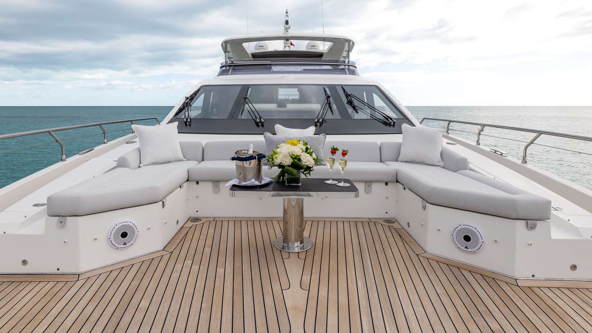 PIER PRESSURE is a 2020 Azimut Grande 27 that delivers sophisticated cruising through the Exumas and beyond. Her sleek, sporty profile pairs refined interiors with practical performance, accommodating ten guests across five cabins. Soft gray tones, ambient LED lighting, and floor-to-ceiling glazing throughout create a contemporary retreat that feels both elegant and intimate.