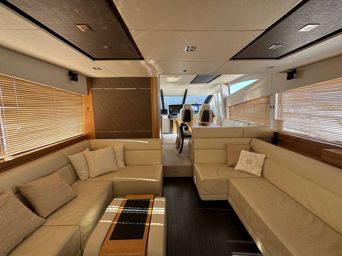 - •Aft alfresco dining deck, spacious bronzing area, and flybridge with panoramic views