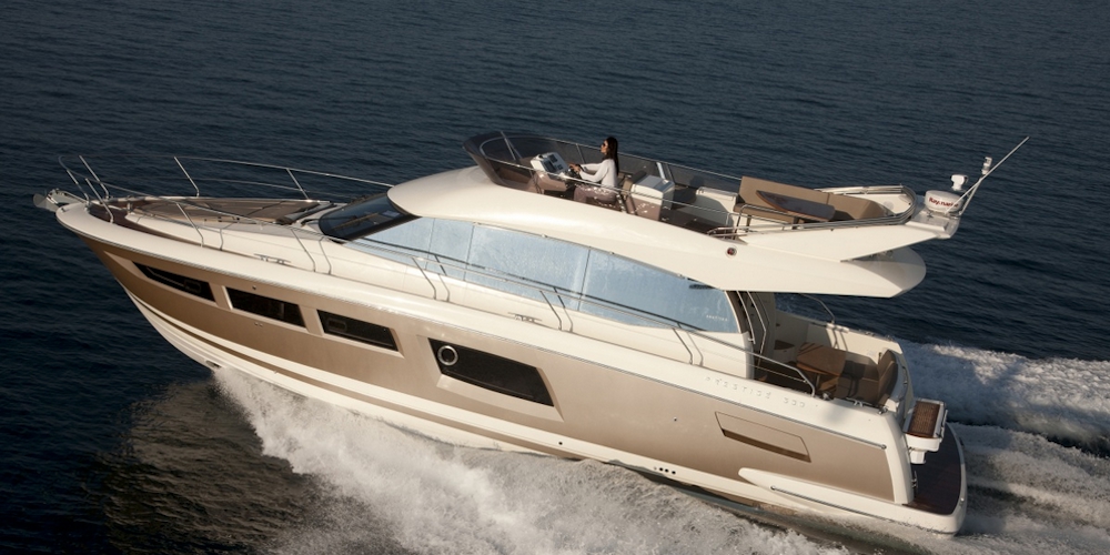 The Jeanneau Prestige 500 Fly combines elegant proportions with practical layout, ideal for those seeking independent yacht management across the Tyrrhenian Sea. This three-cabin motor yacht accommodates up to six guests in considered comfort, with a design philosophy that prioritises clean lines and uncluttered spaces. The main saloon flows seamlessly between interior and exterior zones, creating an intuitive living environment for week-long cruising.