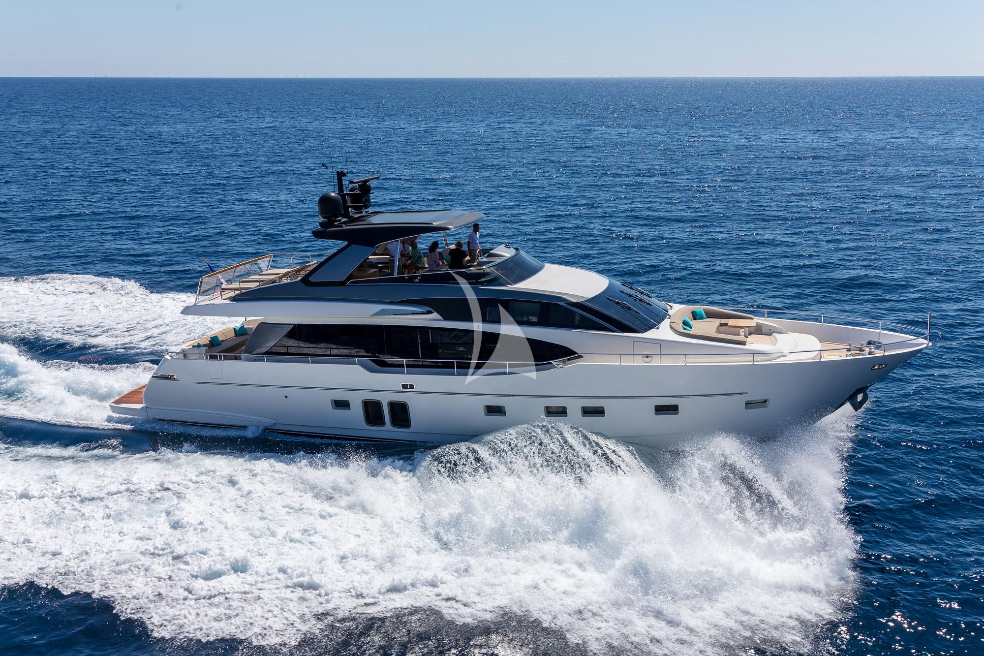 REGINE OF CANNES is a Sanlorenzo SL78 motor yacht built in 2020, combining contemporary design with the refined comfort expected of serious Mediterranean cruising. Her sporty silhouette and bright interiors create an inviting environment where you'll spend mornings stretched across sun beds, afternoons lounging on the expansive flybridge with a glass of Rosé, and evenings gathered for alfresco dining on the aft deck. The four cabins accommodate up to eight guests, each with en-suite facilities and carefully curated appointments.
