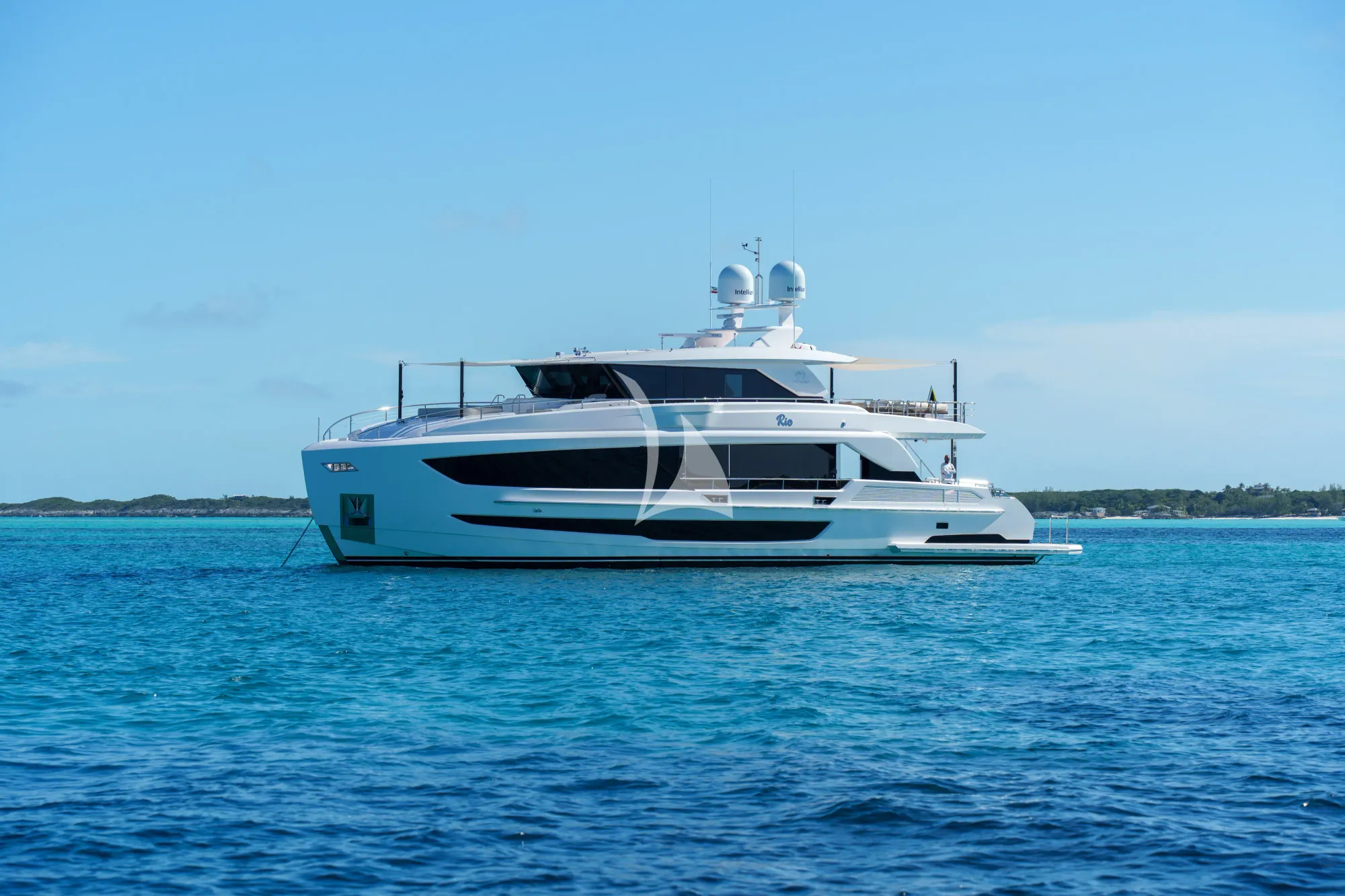Rio is a Horizon FD90 offering the perfect blend of contemporary design and refined cruising capability. Her sophisticated interior features a spacious saloon and dining area bathed in natural light, whilst five cabins with ensuite bathrooms provide comfortable accommodation for up to 11 guests. Teak accents and carefully curated soft furnishings create an atmosphere of understated elegance throughout.
