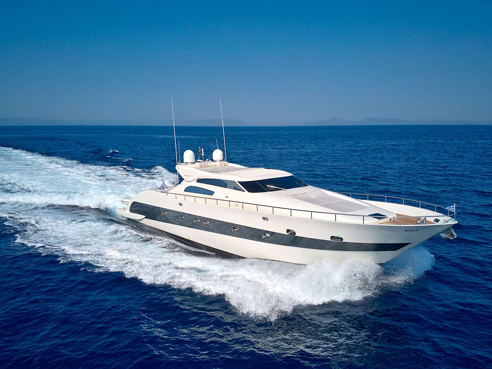 RUBY is a Tecnomar Velvet 83 motor yacht built for the discerning traveller who values both performance and refinement. Her streamlined hull and responsive engines deliver smooth passages across the Aegean, whilst the interior balances contemporary design with natural light through expansive windows. Four thoughtfully appointed cabins accommodate up to eight guests, each with en-suite facilities and a sense of privacy that rewards after a full day exploring.