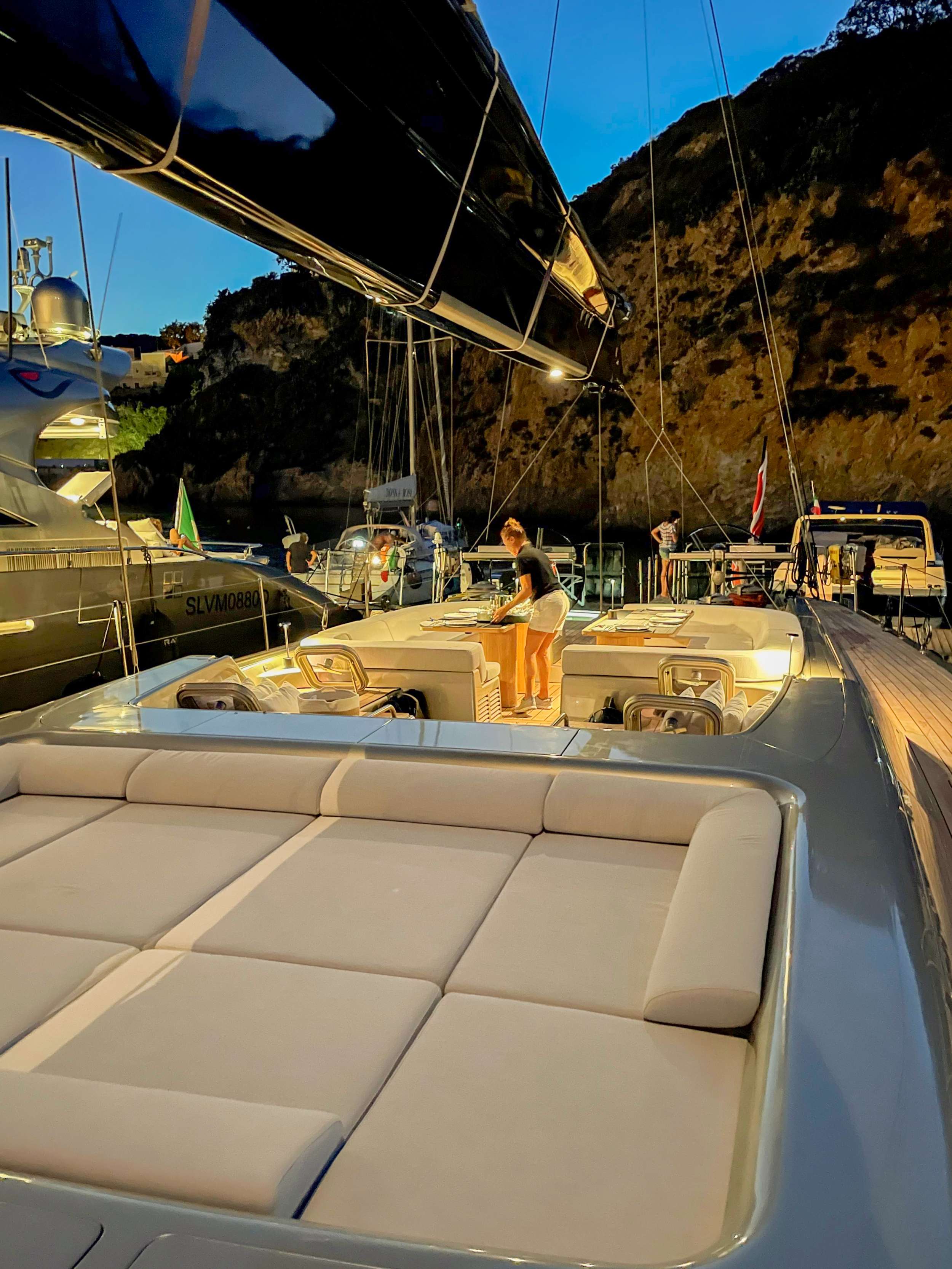 - •Alfresco dining on upper deck and intimate saloon entertaining for Mediterranean cruising