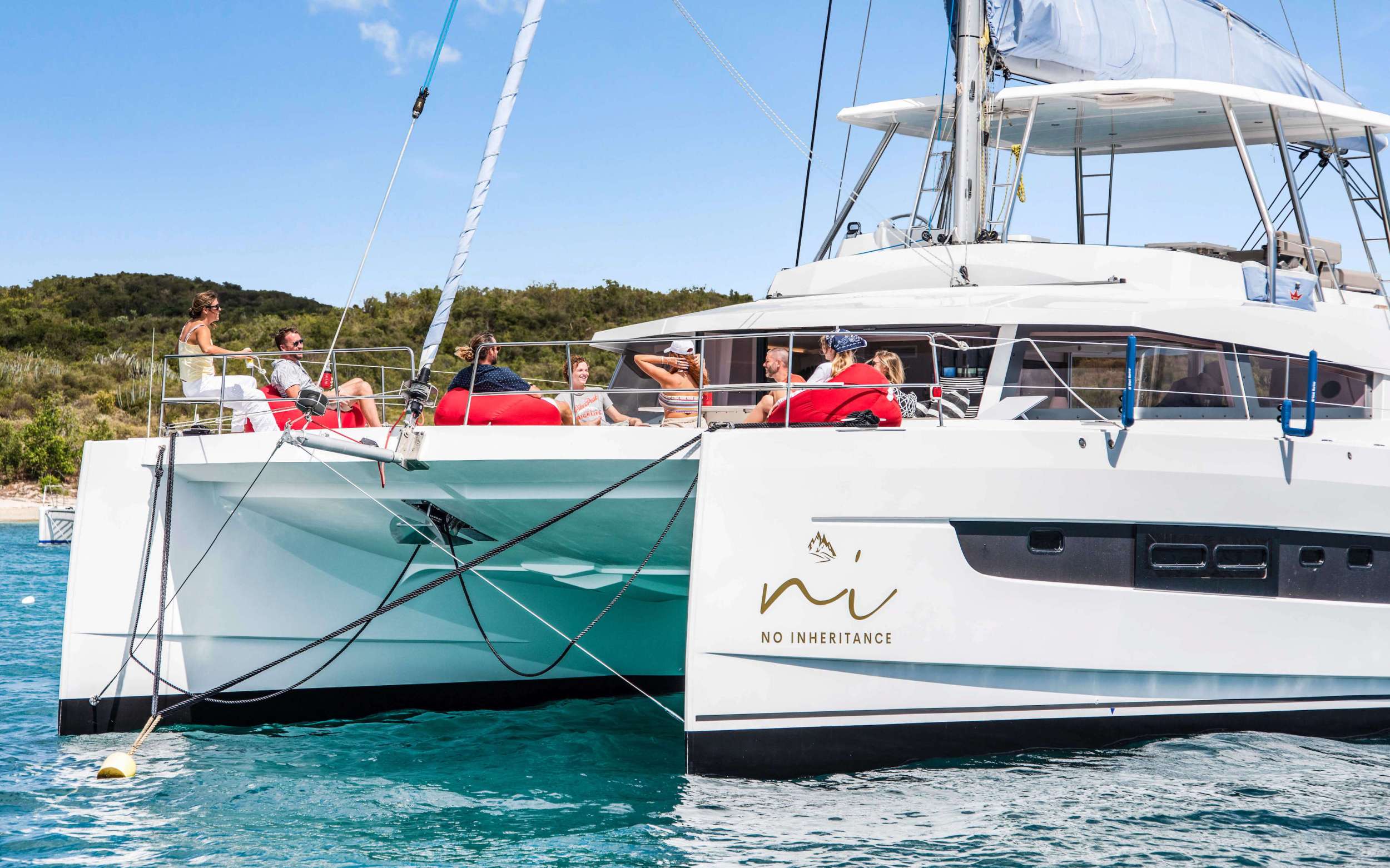 NO INHERITANCE is a Catana Bali 5.4 crewed catamaran completed in 2023, purpose-built for intimate exploration of the Leeward Islands. Her twin-hull design delivers stability and shallow-draft access to the region's most exclusive anchorages, whilst her open-plan saloon and expansive flybridge create naturally social spaces without sacrificing privacy. Five cabins (four doubles, one twin) accommodate ten guests with private ensuite facilities throughout.