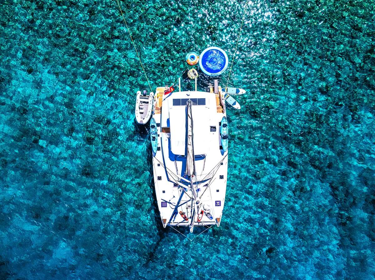 SANDY CINCO is a Fountaine Pajot Ipanema 58 designed for discerning charterers seeking effortless exploration of the Caribbean's most coveted anchorages. Her contemporary hull combines elegant lines with practical layout, enabling seamless movement between social spaces and private retreats across four cabins. The boat's twin hulls deliver stability and generous deck real estate, a hallmark of the catamaran platform.