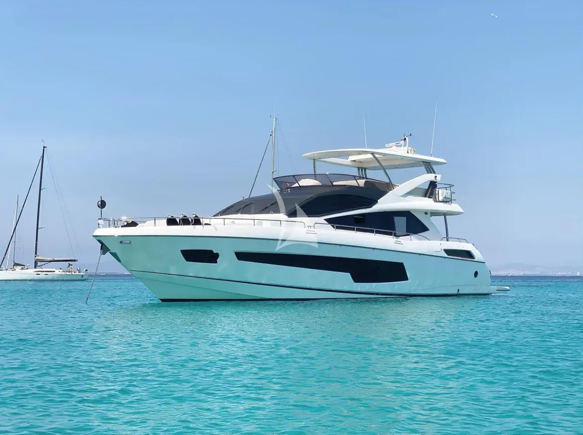 SARAHLISA is a Sunseeker 75 purpose-built for confident coastal cruising across the Mediterranean. Her design balances speed and stability, combining a 24-knot cruising pace with thoughtfully appointed spaces that favour both social connection and private retreat. Clean modern lines and teak accents define the interior, whilst multiple deck levels invite both engagement and contemplation.