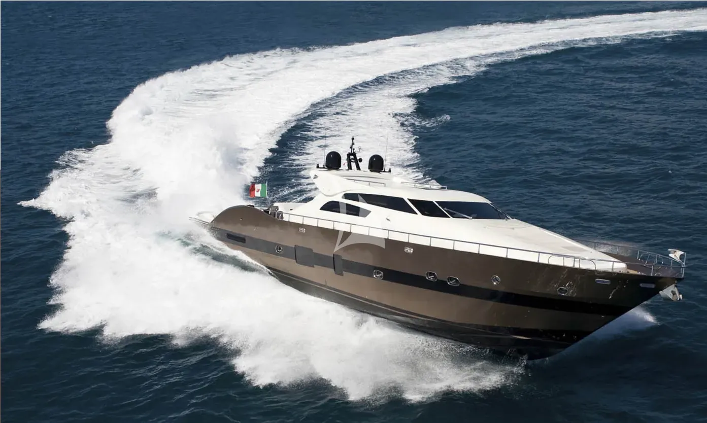 SCORPIO is a Tecnomar Velvet 90 built for those who demand both performance and refinement. Her streamlined hull cuts across the Mediterranean with poise, whilst the interior balances polished teak with contemporary design. Three generous cabins accommodate six guests in comfort, making her ideal for discerning groups seeking privacy without sacrificing the social spaces that define a memorable voyage.