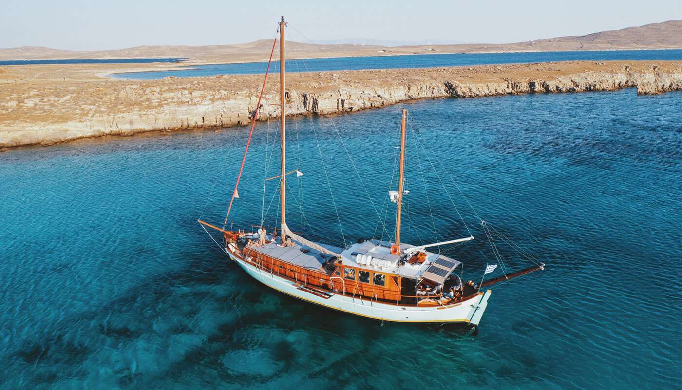 Elegant Psaros sailing yacht. Mykonos to Athens via the Cyclades.