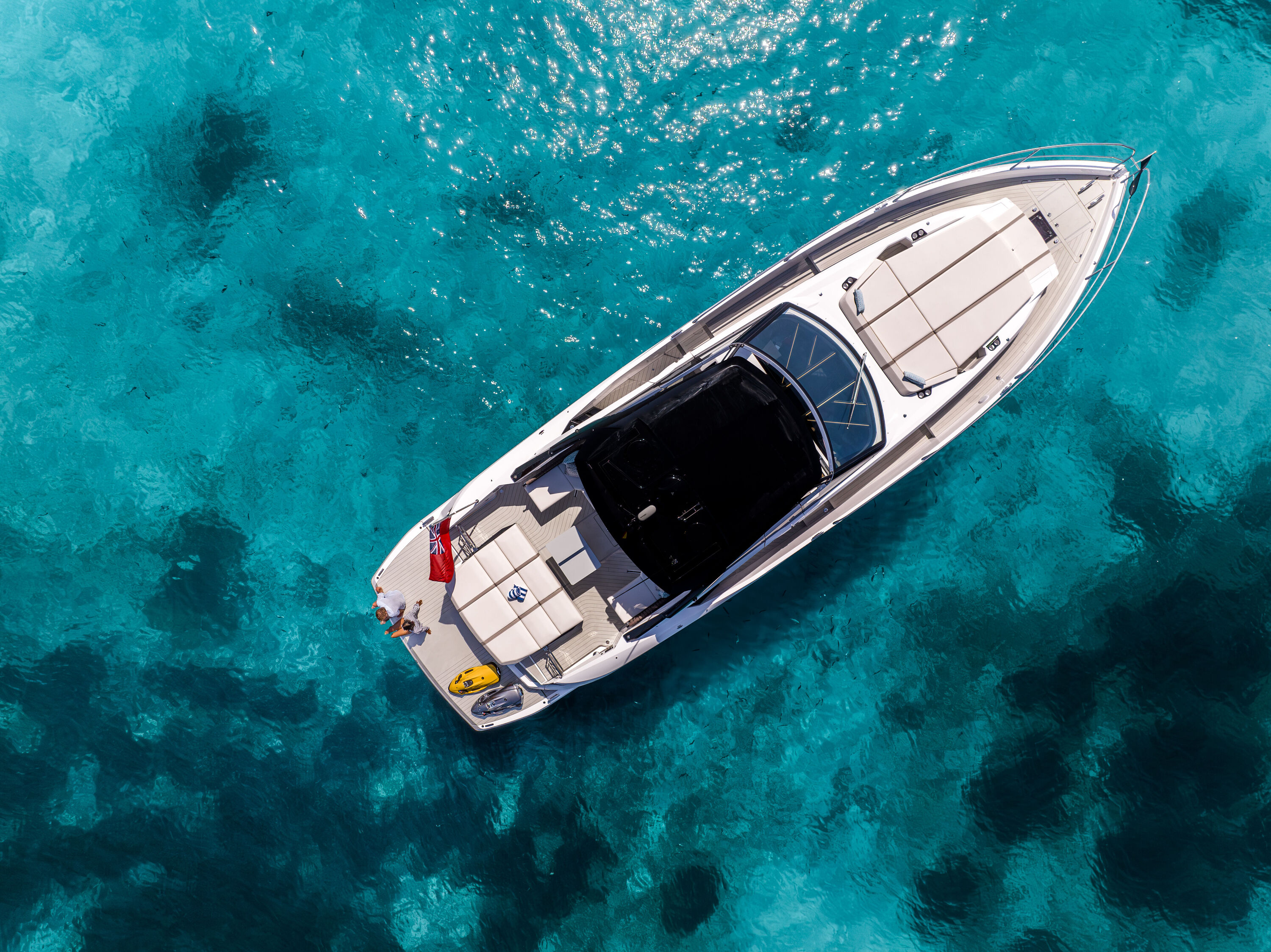 The yacht's responsive handling and smooth cruising ensure effortless passage across the Mediterranean. A swim platform grants direct access to the water, ideal for spontaneous swims at secluded bays. Your experienced local Captain curates the day's itinerary, drawing on intimate knowledge of hidden spots, Michelin-listed restaurants, and exclusive beach clubs frequented by those in the know.