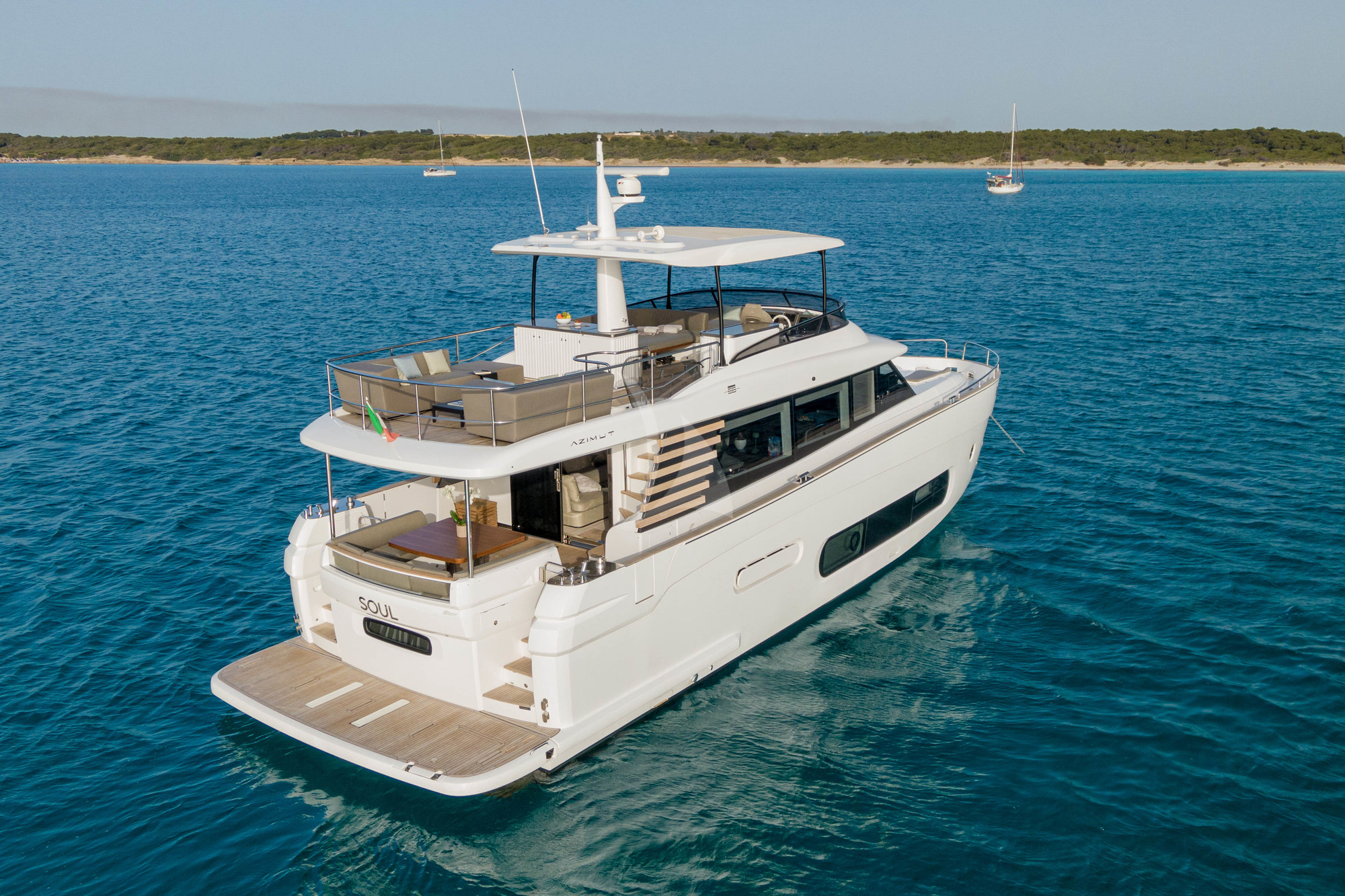 SOUL is a 2022 Azimut Magellano 66 purpose-built for discerning guests seeking the Amalfi Coast at an unhurried pace. Her sleek modern design pairs effortlessly with substantive performance, delivering a smooth passage through the Campanian waters whilst her three well-appointed cabins accommodate six guests in genuine comfort. Inside, the saloon and dining area balance convivial gatherings with intimate retreats, whilst her teak decks and foredeck bronzing area invite you to engage directly with the sea.