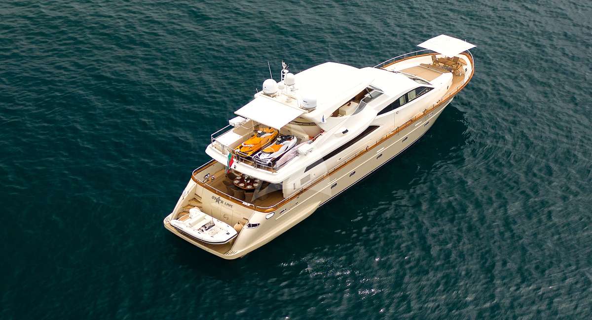 STAR LINK is a Falcon 90 motor yacht built in 2008 and comprehensively refitted in 2020. She accommodates eight guests across four cabins, each with ensuite facilities. The master and VIP cabins offer queen berths, whilst two twin cabins provide flexible sleeping arrangements. Generous deck spaces afford genuine tranquillity at anchor or underway.