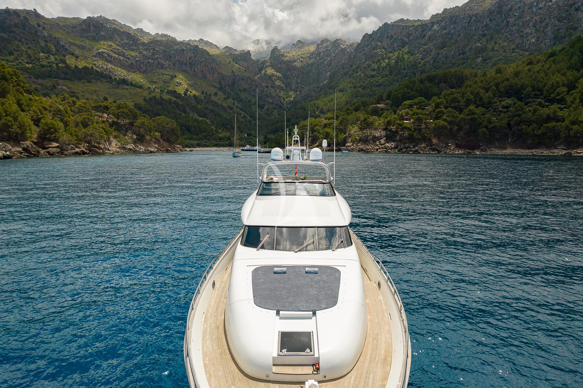SUBLIME MAR is a Maiora 28m crewed motor yacht offering refined comfort for up to eight guests across four cabins. Built in 2003, this vessel combines purposeful design with the warmth of teak interiors and floor-to-ceiling windows that flood the saloon and dining areas with Mediterranean light. Each cabin features a private ensuite, providing peaceful respite between days of exploration.