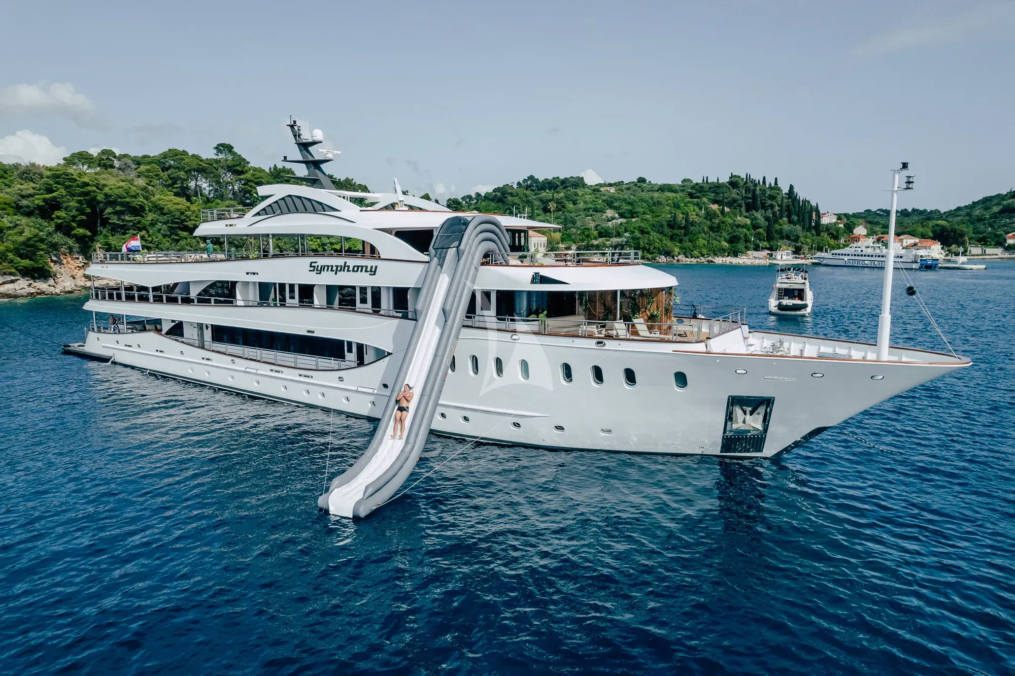 SYMPHONY is a custom-built motor yacht launched in 2020, purpose-designed for large-group charters across Croatia's Dalmatian coast. Her 15 cabins accommodate 30 guests in generous, light-filled spaces with refined contemporary interiors and private en-suite facilities. The professional crew of 11, led by Captain Filip, combines deep local knowledge with technical expertise and attentive service that anticipates every requirement.