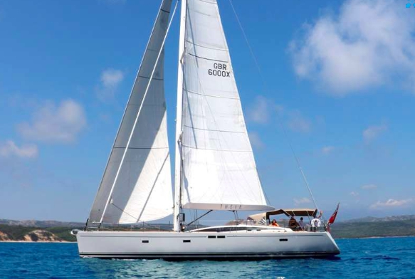 THEIA OF LONDON is a CNB Bordeaux 60 shaped by renowned designer Philippe Briand, built in 2012 and refreshed in 2018. Her defining traits are sculptural modern lines, expansive coachroof glazing, and a luminous saloon that justifies her reputation among serious sailing enthusiasts. This is understated French craftsmanship paired with genuine performance.