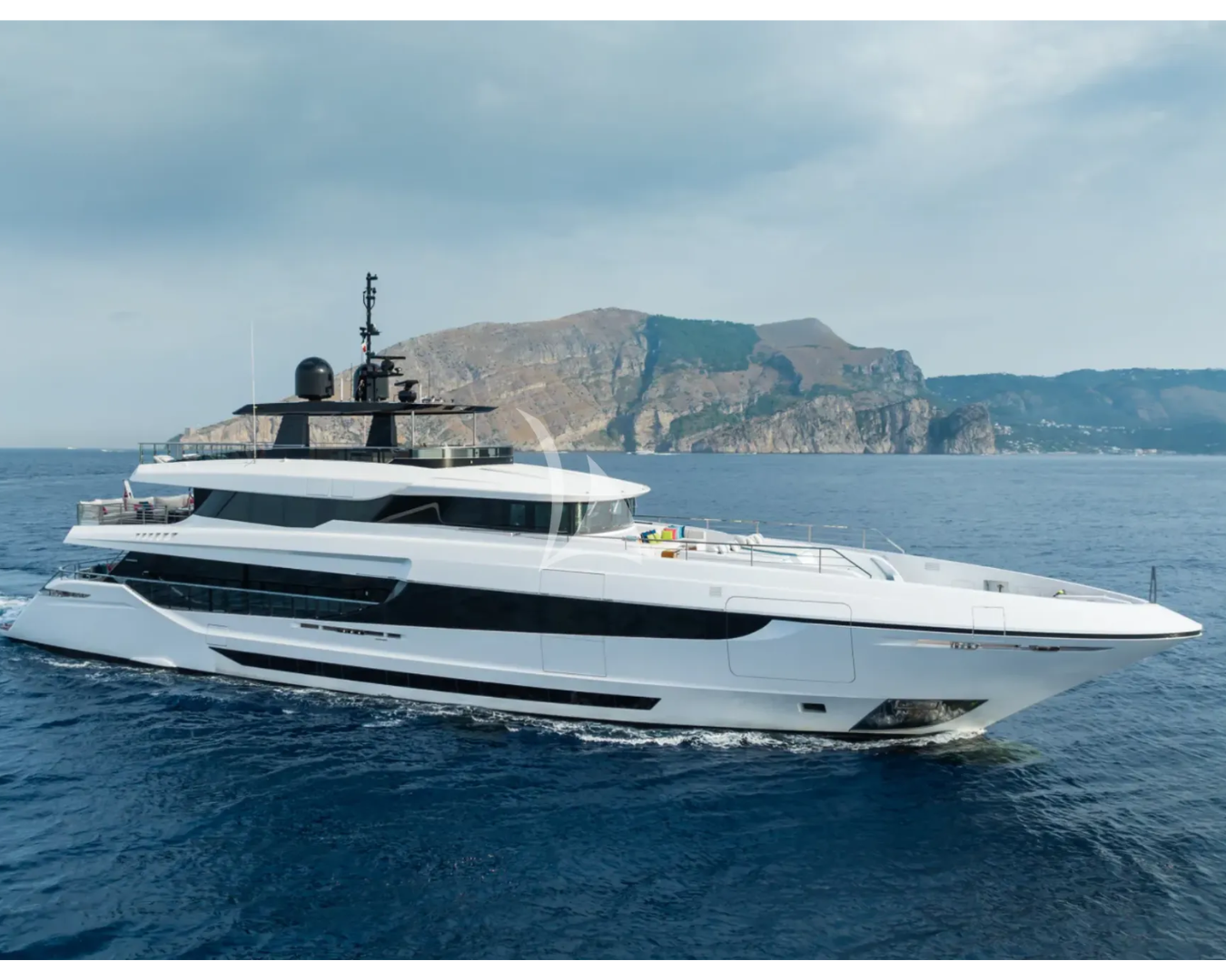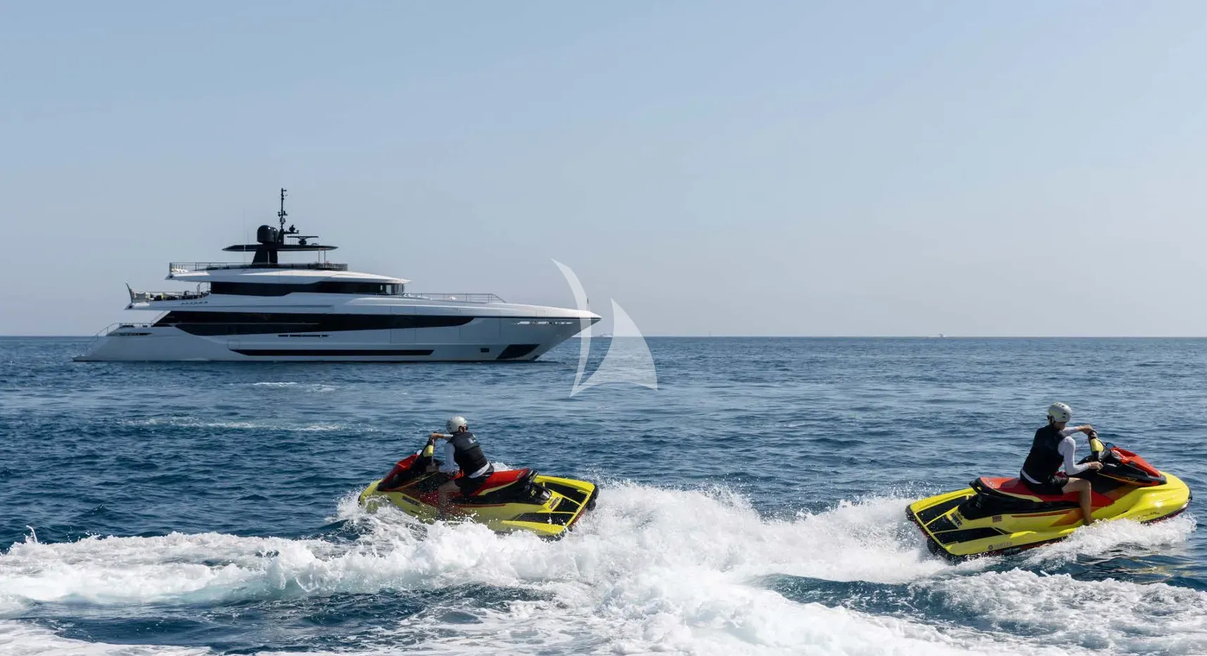 The yacht's social spaces are purposefully generous. Discover multiple lounging areas for conversation and relaxation, a dedicated beach club with wet bar and seating, and a signature infinity dip pool on the foredeck ideal for cooling off during Mediterranean anchoring. Advanced zero-speed and underway stabilizers ensure comfort whether you're stationary or underway.