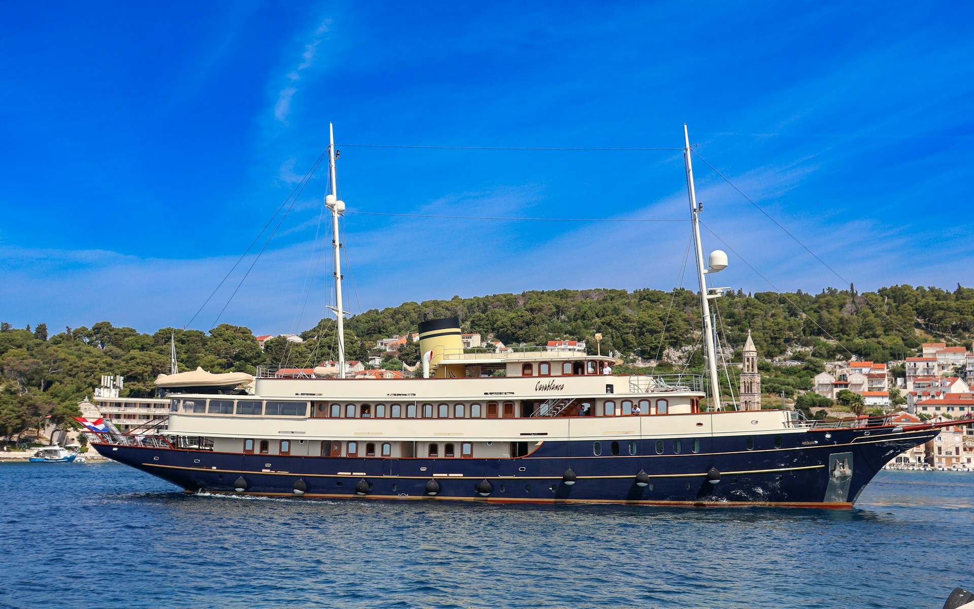 Charter TUSCAN SUN along the Croatian Dalmatian coast, where Split, Hvar, and Korcula remain the defining ports of call. Captain Ivan and crew navigate these crystalline waters with intimate knowledge, revealing secluded anchorages and white-stone villages unreachable by land. Days unfold between hidden swimming coves, Byzantine architecture, and Adriatic seafood; evenings anchor beneath olive groves or dock in lively harbours. The yacht's comprehensive water toys (jet skis, SeaBob, paddleboards, kayak, and full snorkel kits) transform leisure into activity, whilst the cabin sanctuary ensures restorative privacy.