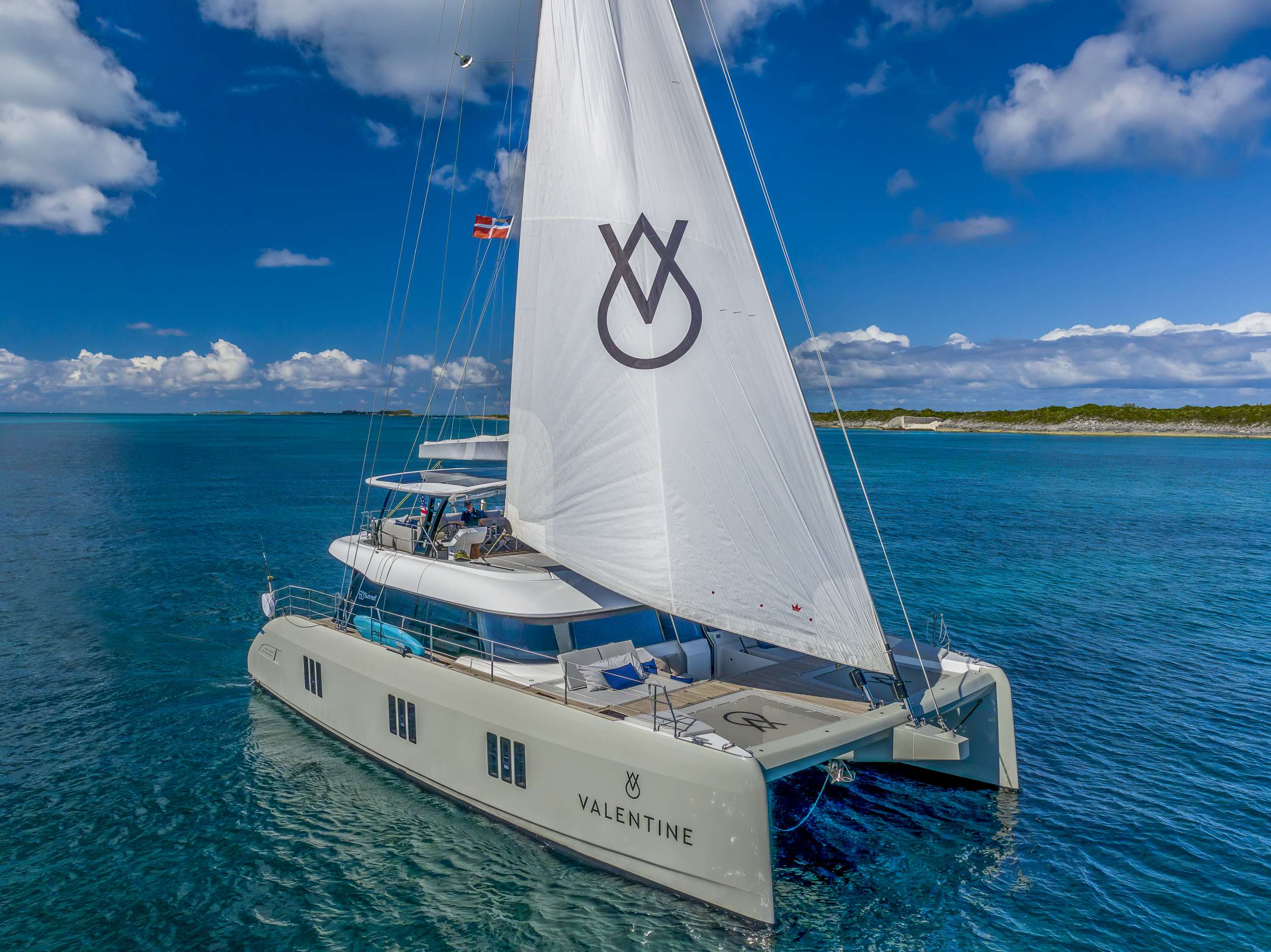 VALENTINE is a Sunreef 60 catamaran launched in 2021, purpose-built for discerning guests seeking refined Caribbean cruising. Her twin-hulled design delivers stability and shallow-draft access to anchorages beyond reach of conventional yachts, whilst four generously appointed queen cabins accommodate eight guests in understated comfort. White and natural timber tones throughout create an airy, contemporary aesthetic; the saloon flows seamlessly to an expansive aft deck ideal for alfresco dining.