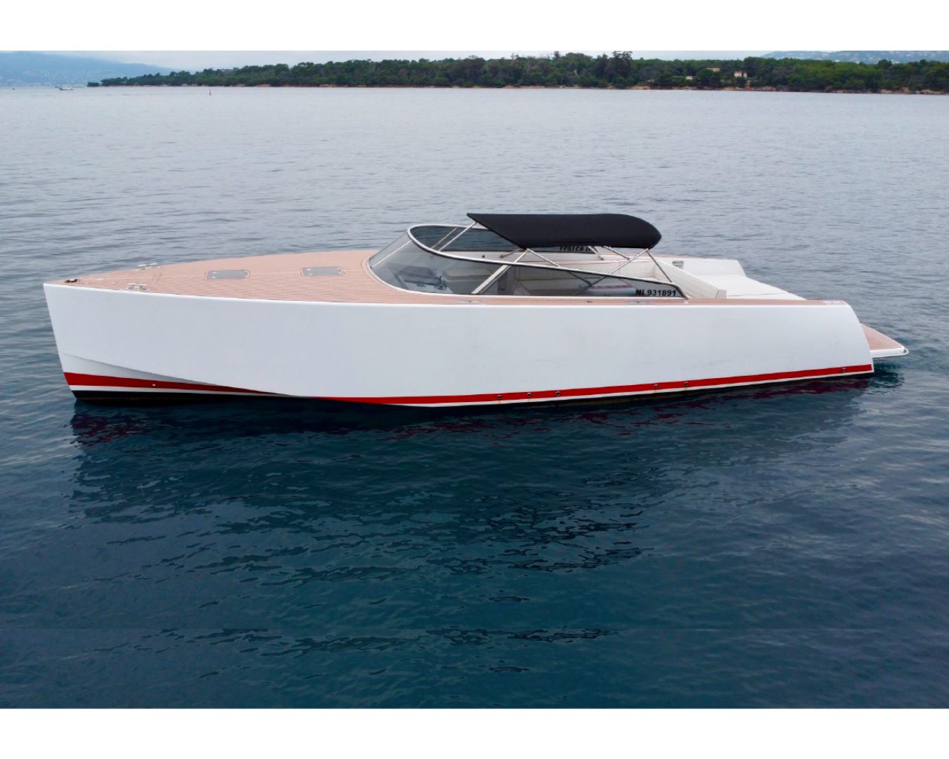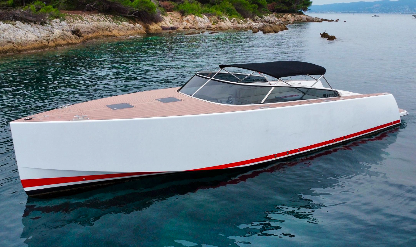 The Van Dutch 40 Royal is a contemporary motor yacht purpose-built for discerning charterers who value design as much as performance. Her minimalist hull and clean-lined profile turn heads across the French Riviera, whilst her twin Yammer engines deliver effortless passage between Golfe Juan, Cannes, Antibes, and St Tropez.