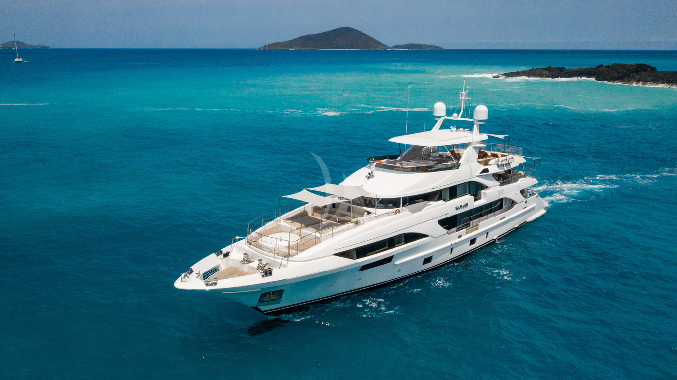 WABASH is a Benetti 132 that delivers the refined comfort and scale expected of her Italian pedigree. Five cabins sleep ten guests across a main deck master with dual ensuites and walk-in closet, plus four generously appointed guest cabins. Four expansive deck spaces, anchored by a forward Jacuzzi deck, prioritise alfresco living. Floor-to-ceiling glazing floods the contemporary interior with natural light, whilst the voluminous main salon provides an elegant setting for private dining and entertainment.