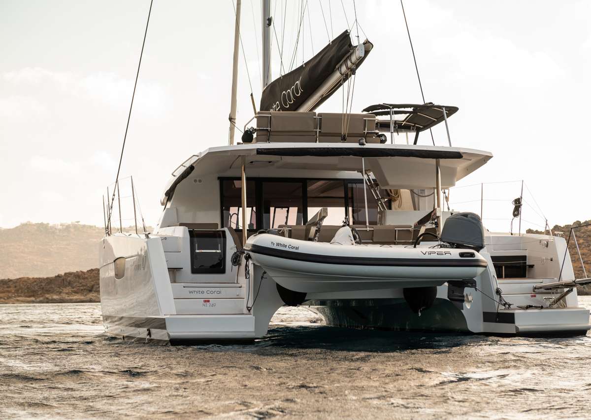 WHITE CORAL is a Fountaine Pajot Saona 47 catamaran built in 2020, purpose-designed for discerning groups seeking comfort and flexibility across the Greek islands. Five generously appointed cabins (four doubles and one twin) each feature private bathrooms, accommodating up to ten guests with room to breathe. The yacht's dual-hull design delivers stability and shallow-draft access to lesser-known anchorages throughout the Cyclades.