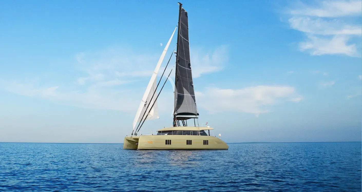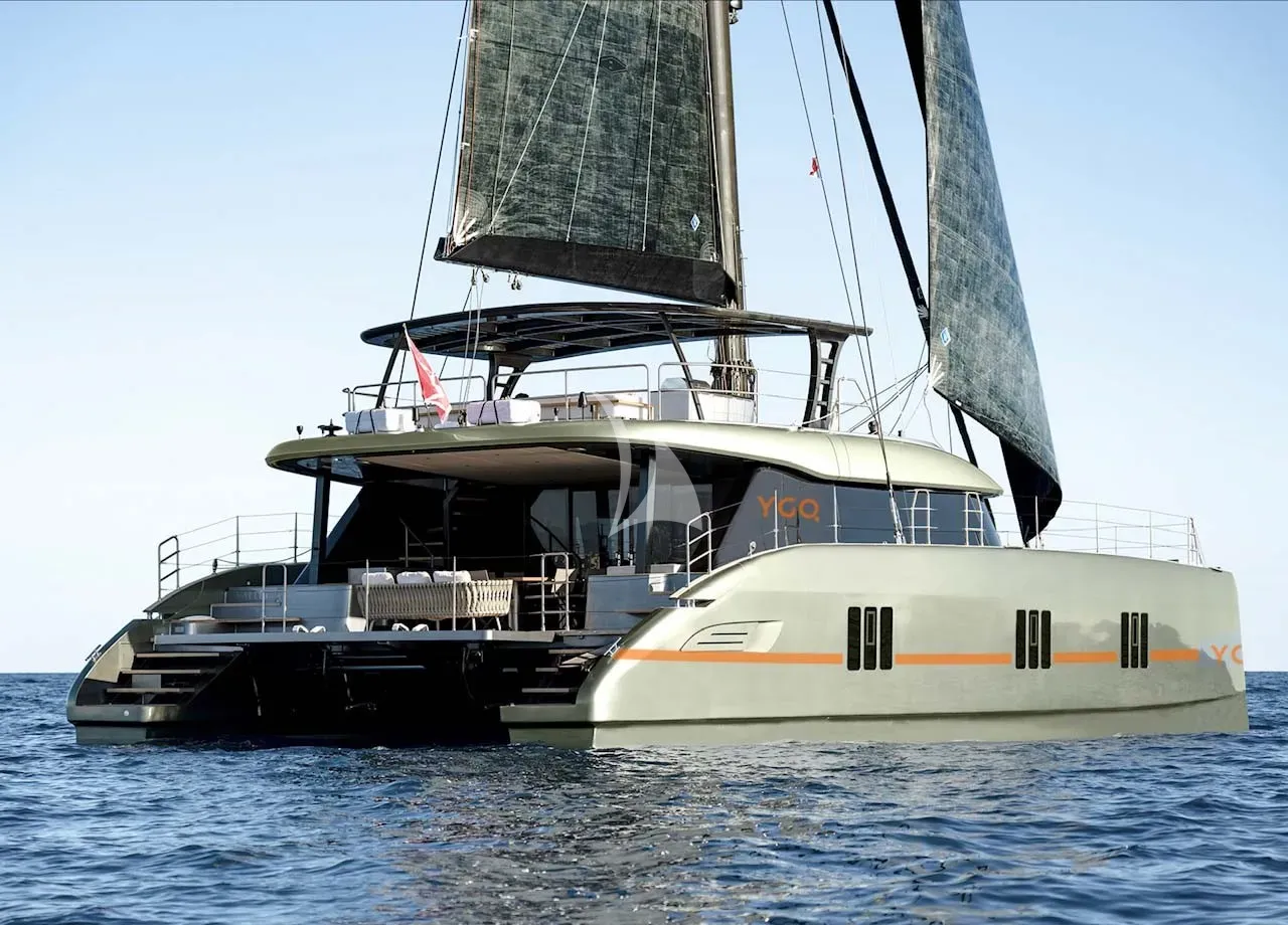 YGO. is a Sunreef 60 catamaran built in 2022, designed for effortless cruising across the Balearic Islands. Her sage green hull and twin-hull stability deliver smooth passage through Spanish waters, whilst her generous deck spaces—twin foredeck trampolines, expansive flybridge, and aft dining zone—encourage both socialising and contemplation. Four double cabins accommodate eight guests in quiet comfort, each with ensuite bathrooms and ample natural light through large hull windows.
