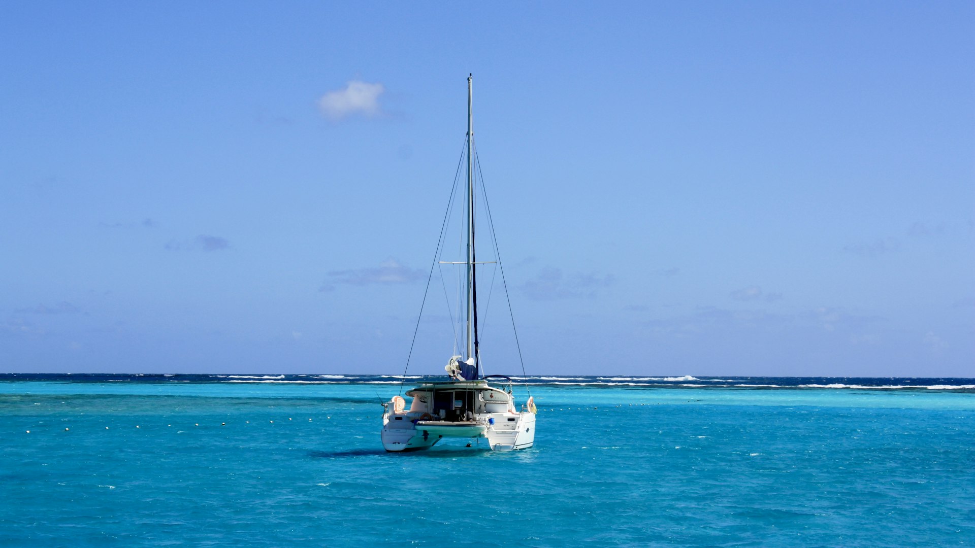 Shallow draught — typically 1.2 to 1.5 metres on a production cruiser — opens anchorages that monohulls cannot reach: the translucent inner lagoons of the Tuamotus, the sand flats of the Exumas, the protected bays tucked behind Sardinia's headlands. Add the ability to beach-stern or drop a bow anchor and stern lines to a palm tree, and you have a vessel that doubles as a private beach club.